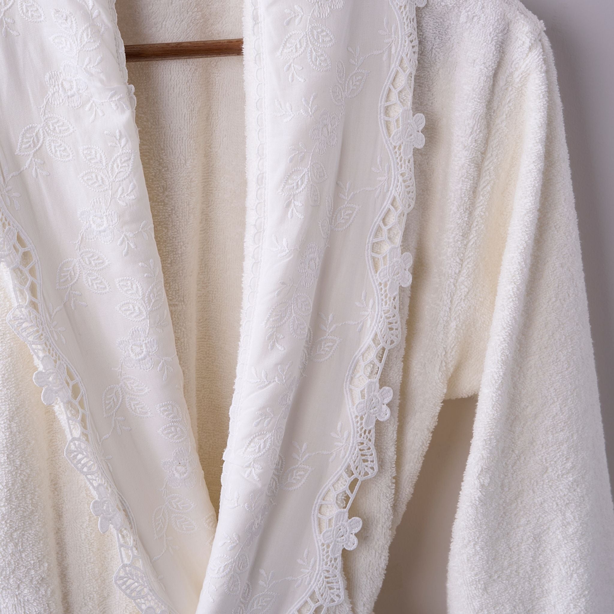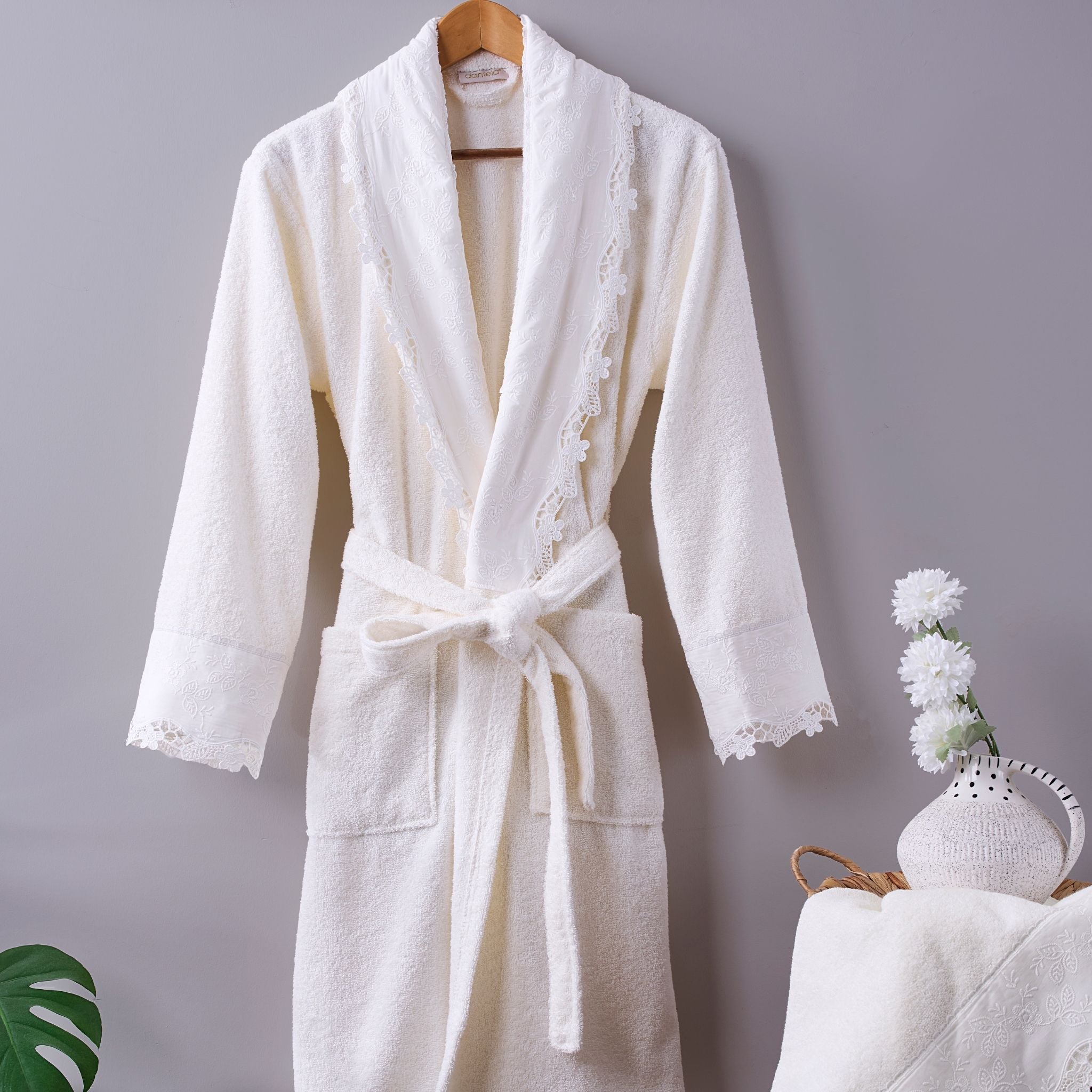 Cındy Tekli Pamuklu Güpürlü Bornoz Seti