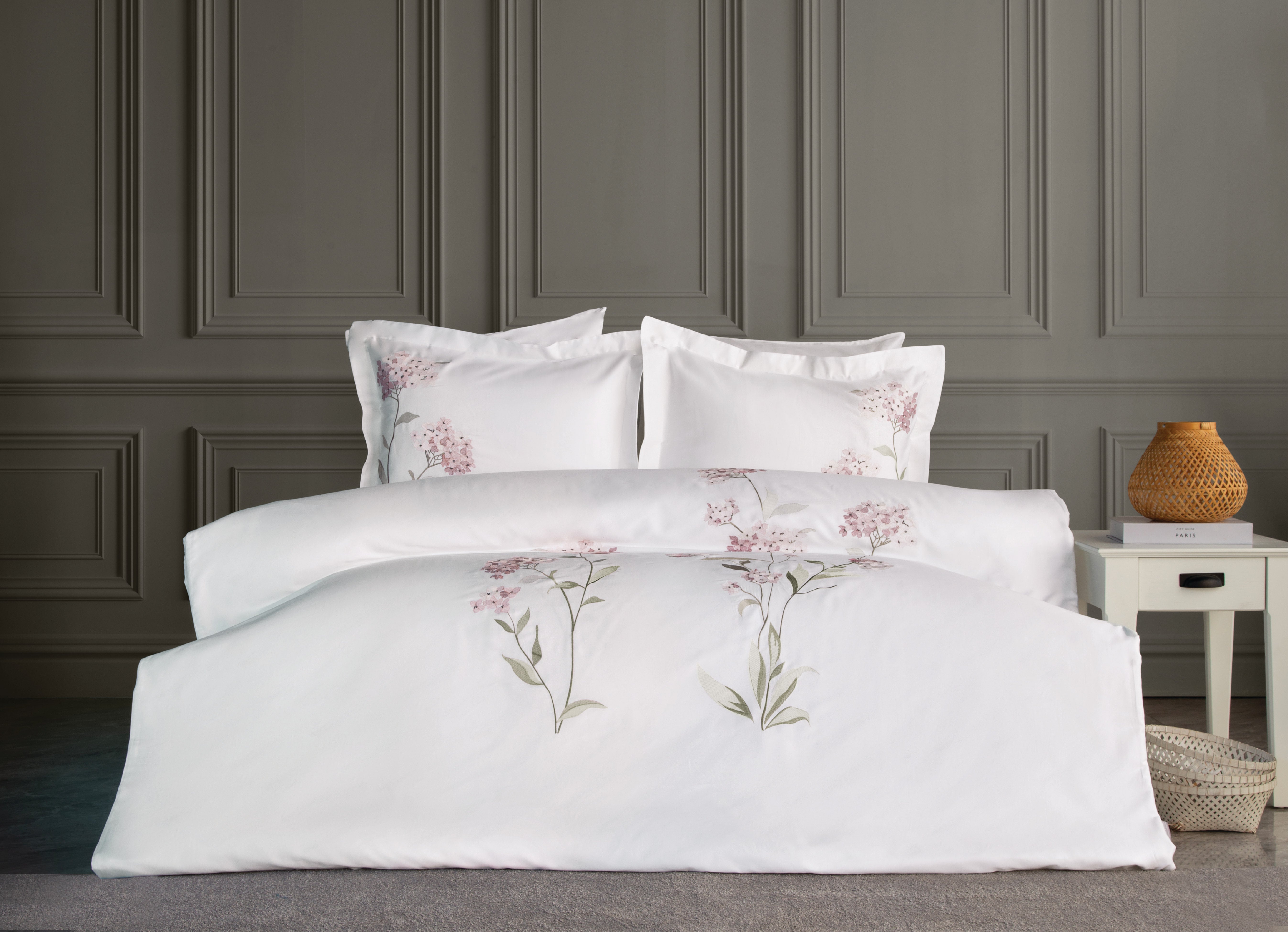 Lavinya Nakışlı Pamuk Saten Nevresim Takımı - Pudra