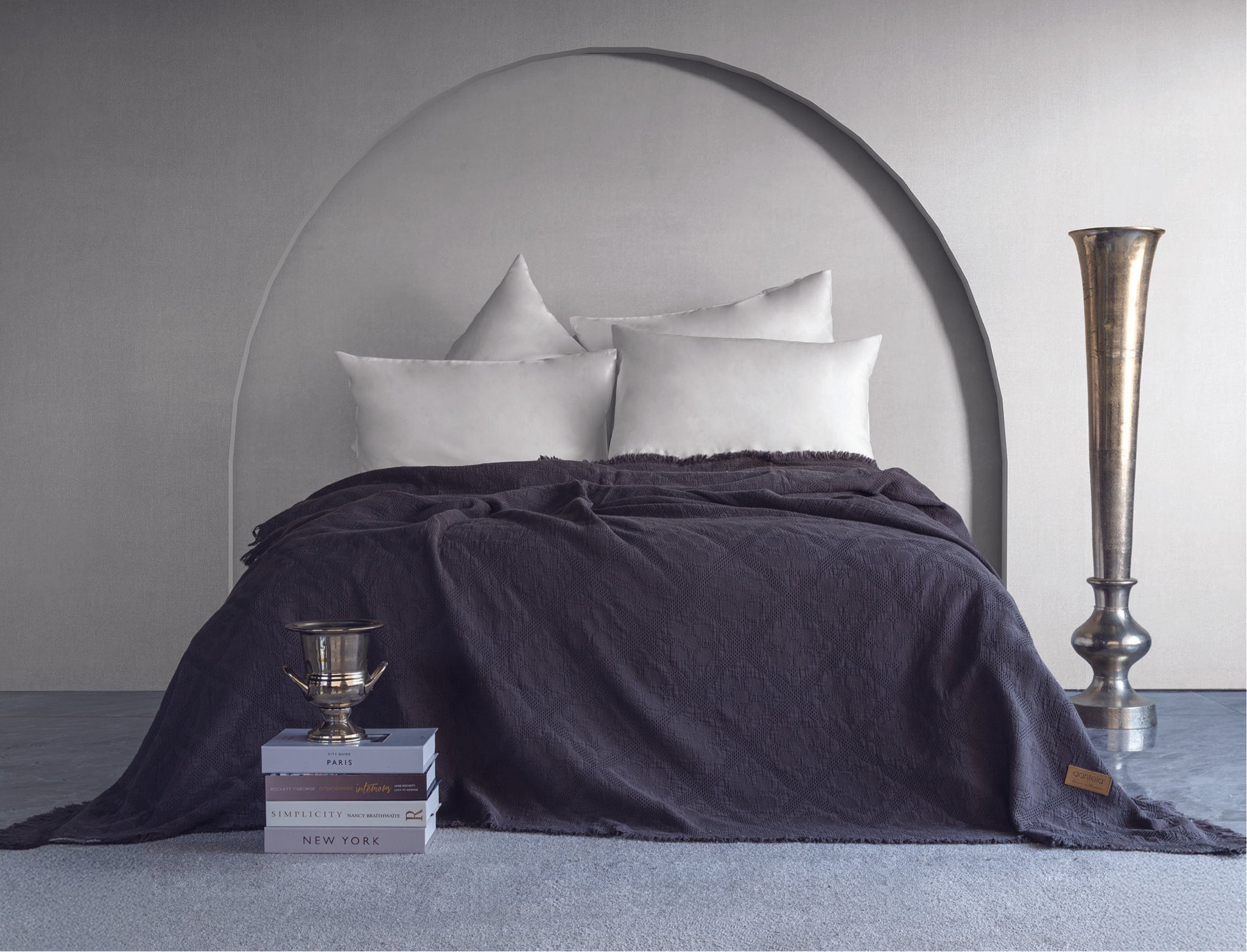 Zarif tasarımı ve kaliteli dokusu ile yatak odanıza modern bir hava katan antrasit yatak örtüsü, hem şık görünümü hem de konforlu yapısı ile öne çıkıyor. Hafif yapısı sayesinde dört mevsim kullanıma uygundur. Yumuşak dokusu ile cildinize nazikçe temas ederken, odanızda sade ama lüks bir atmosfer oluşturur.