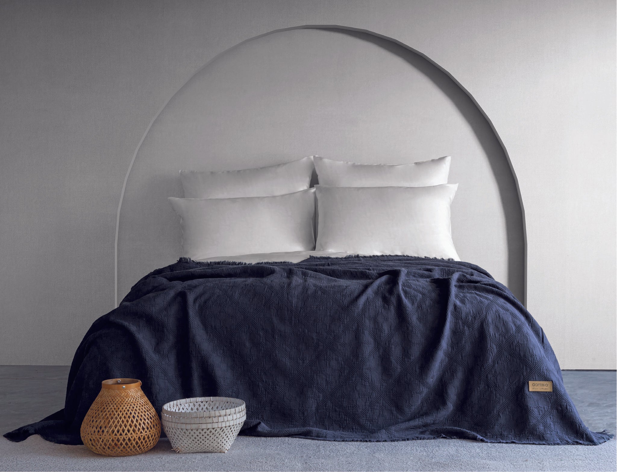 240x260 cm ölçülerindeki bu şık yatak örtüsü, geniş kullanım alanı sayesinde çift kişilik yataklar için mükemmel uyum sağlar. Lacivert renginin asaletiyle tasarlanan ürün, yatak odanıza modern ve lüks bir hava katar. Yumuşak dokusu sayesinde hem konforlu hem de dekoratif bir kullanım sunar. Dört mevsim tercih edebileceğiniz bu yatak örtüsü, hafif yapısı ve kaliteli kumaşıyla uzun süre ilk günkü şıklığını korur. Evinize zarafet katmak isteyenler için ideal bir seçim!
