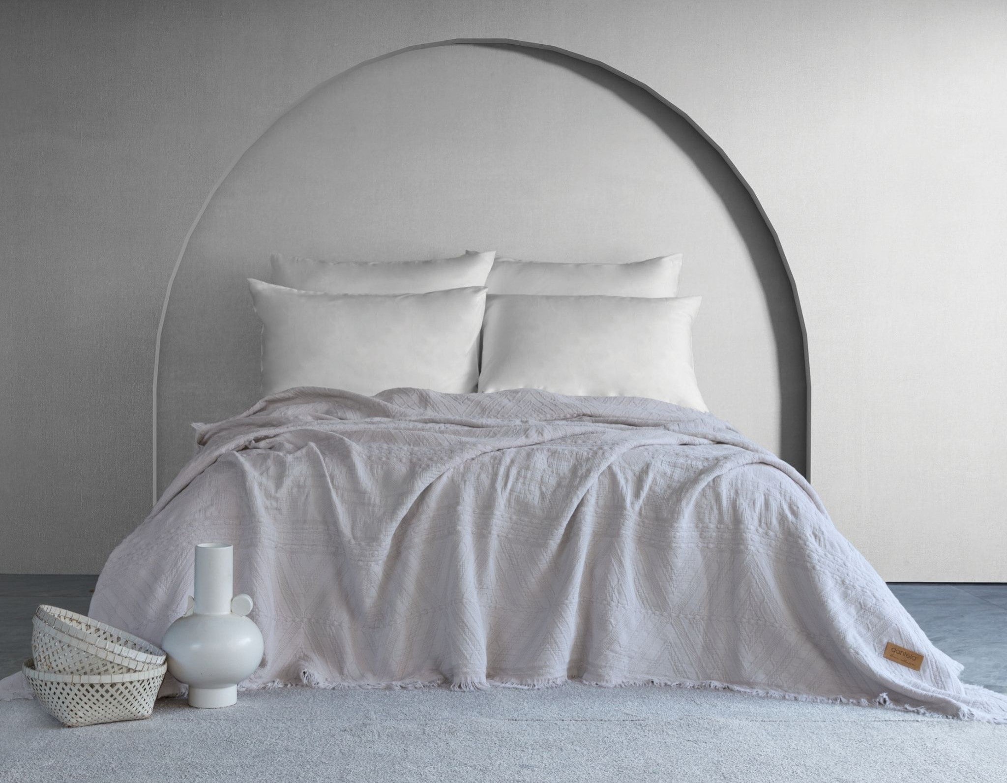Lumia Etnik Desen Yatak Örtüsü - Açık Gri