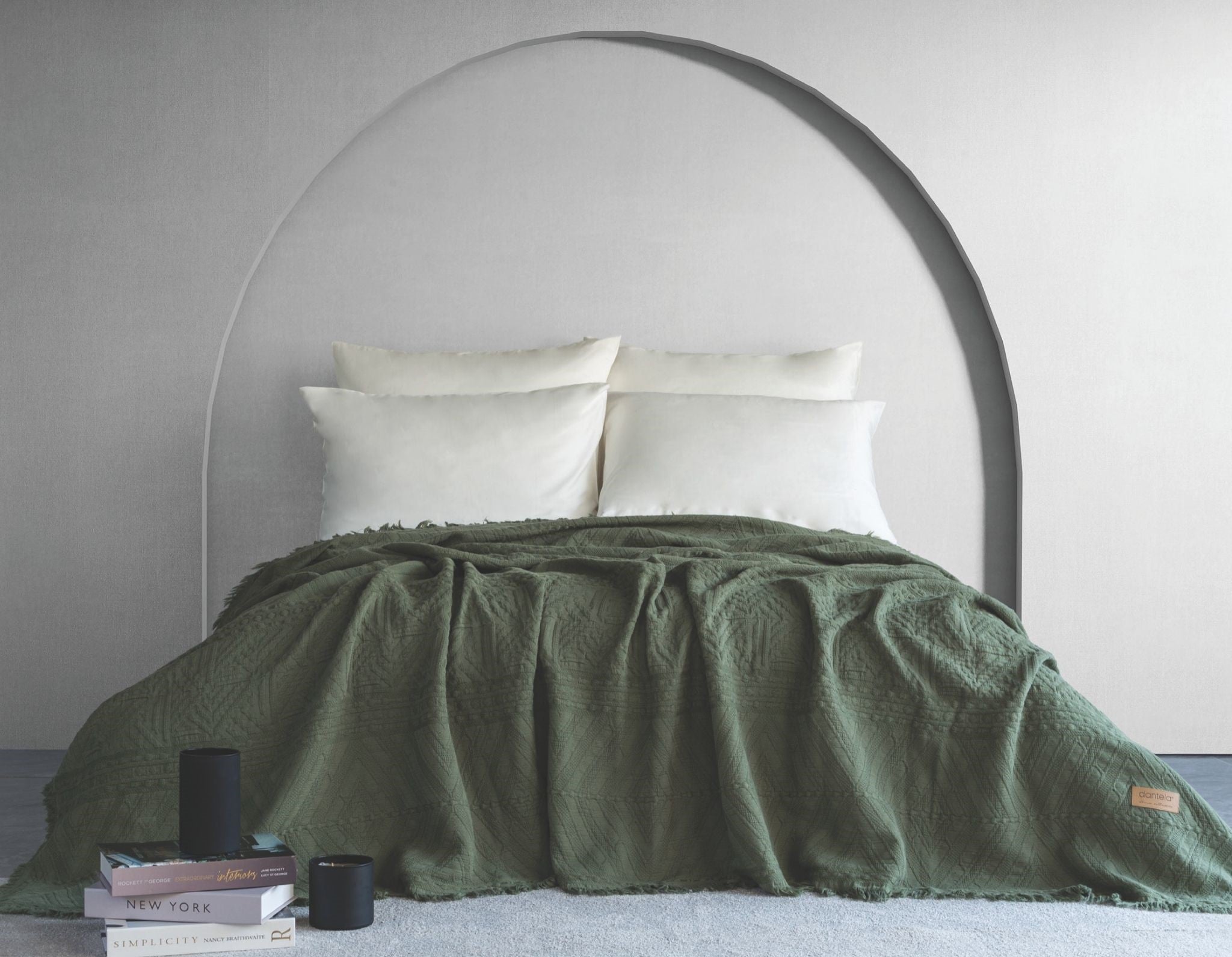 Lumia Etnik Desen Yatak Örtüsü -Haki