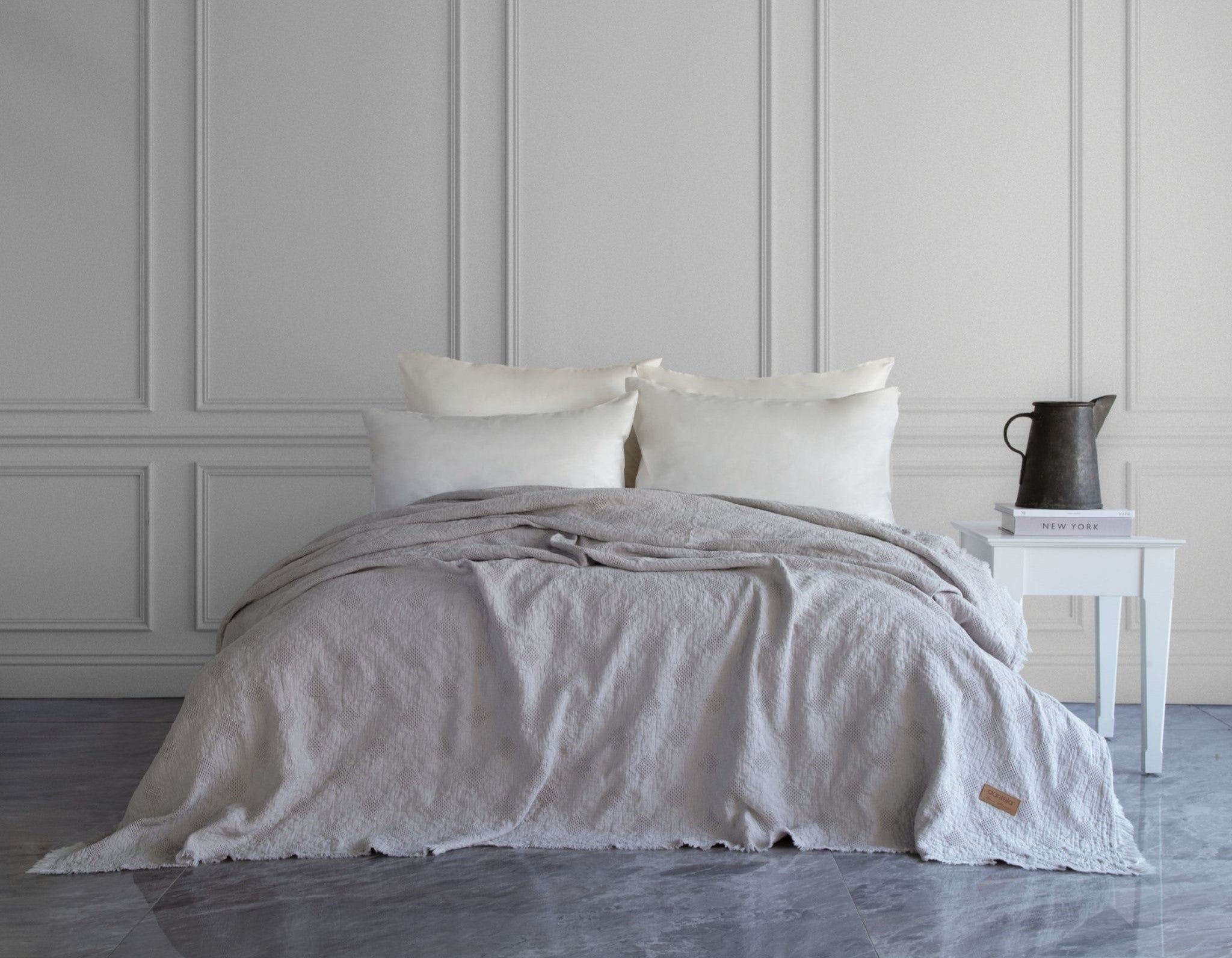 Notte Fitilli Yatak Örtüsü - Açık Gri