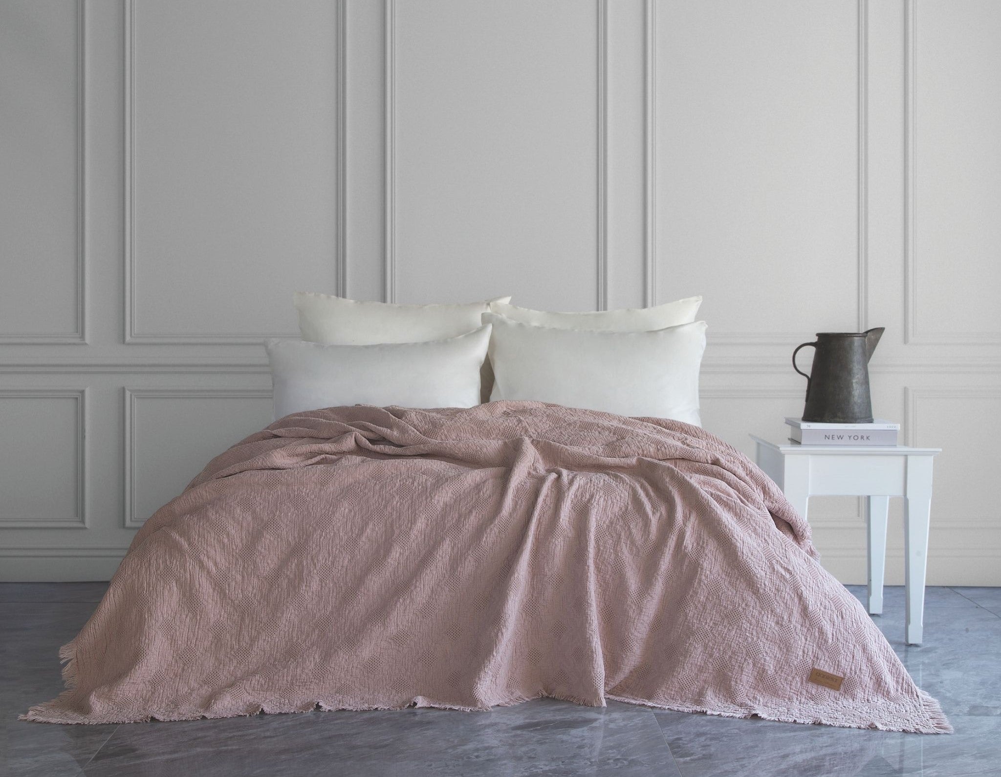 🛏️ Notte Fitilli Desen Yatak Örtüsü – Pudra | Çift Kişilik (240x260 cm)