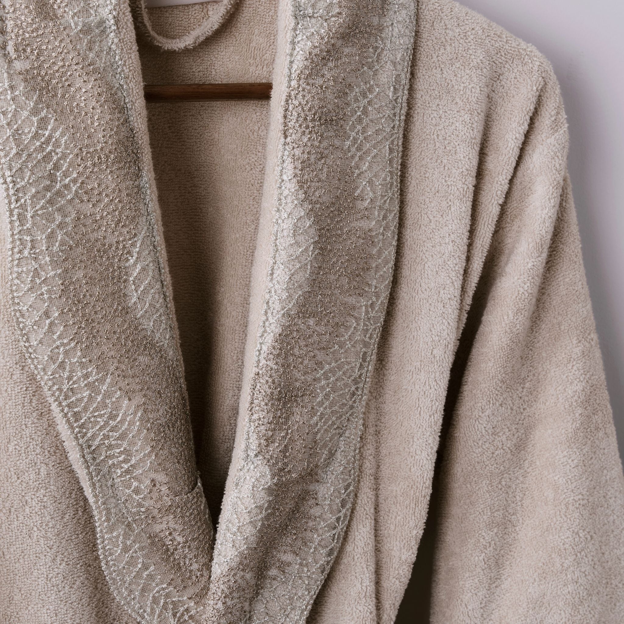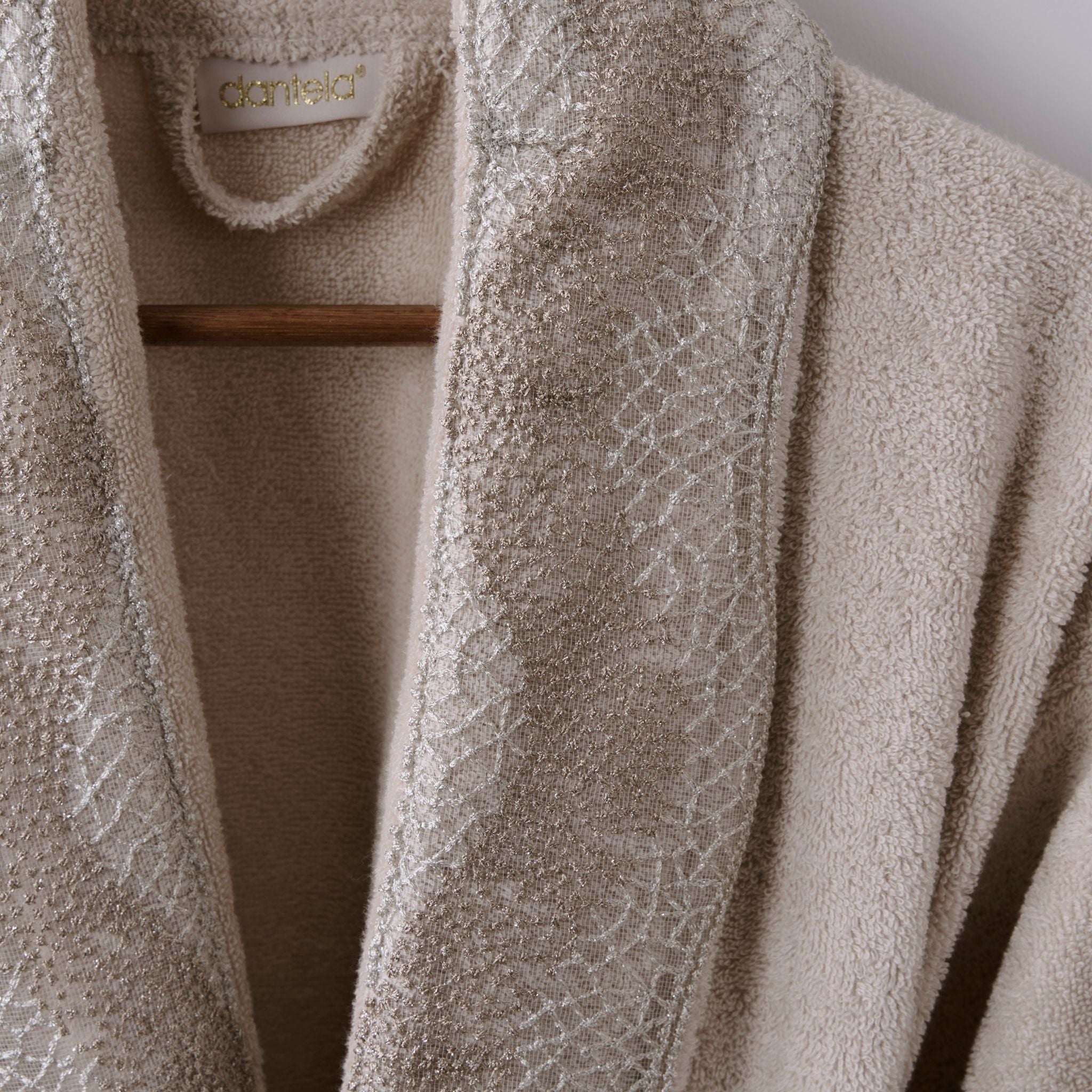 Pare Tek Kadın Pamuk Güpürlü Bornoz - Bej