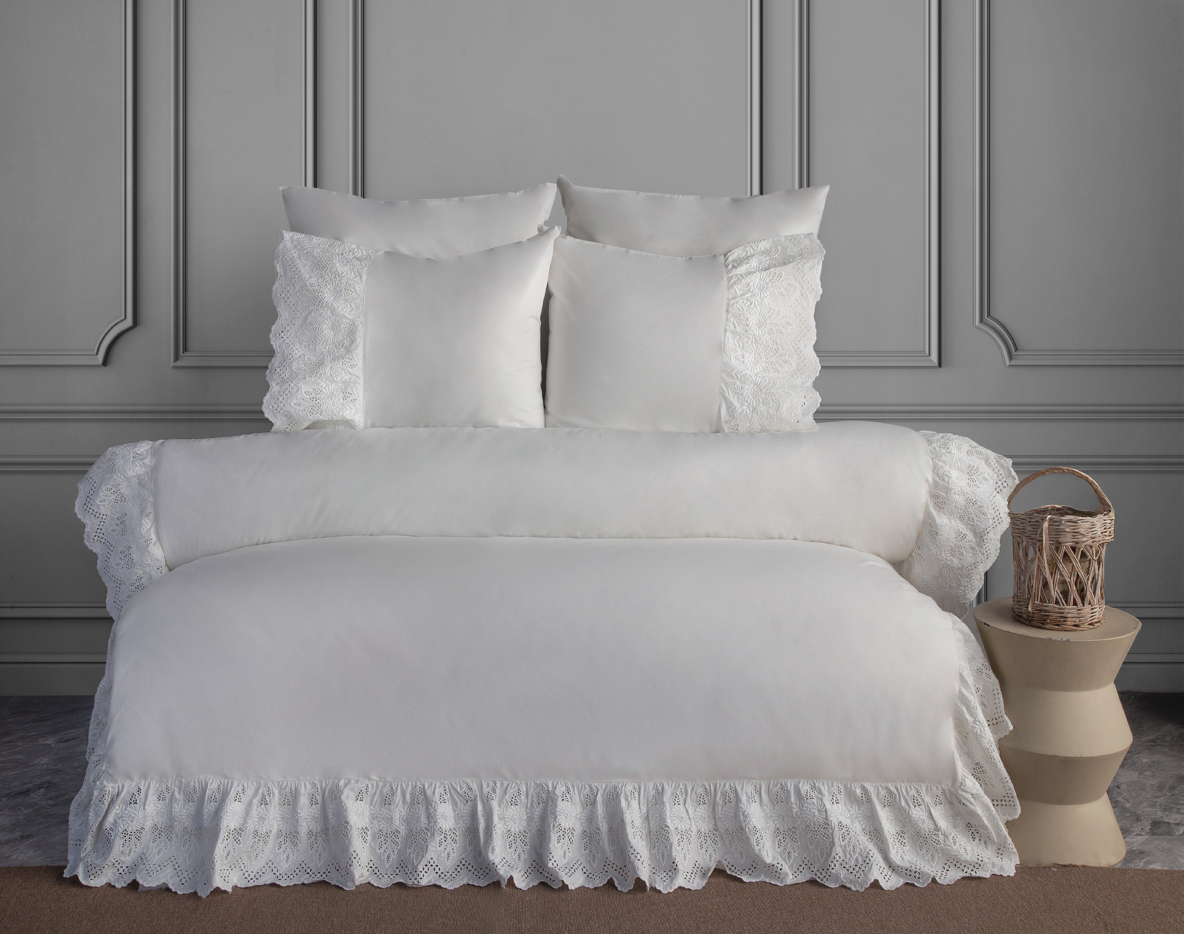 Romantica Poplin Kumaş Güpürlü Nevresim Takımı - Krem