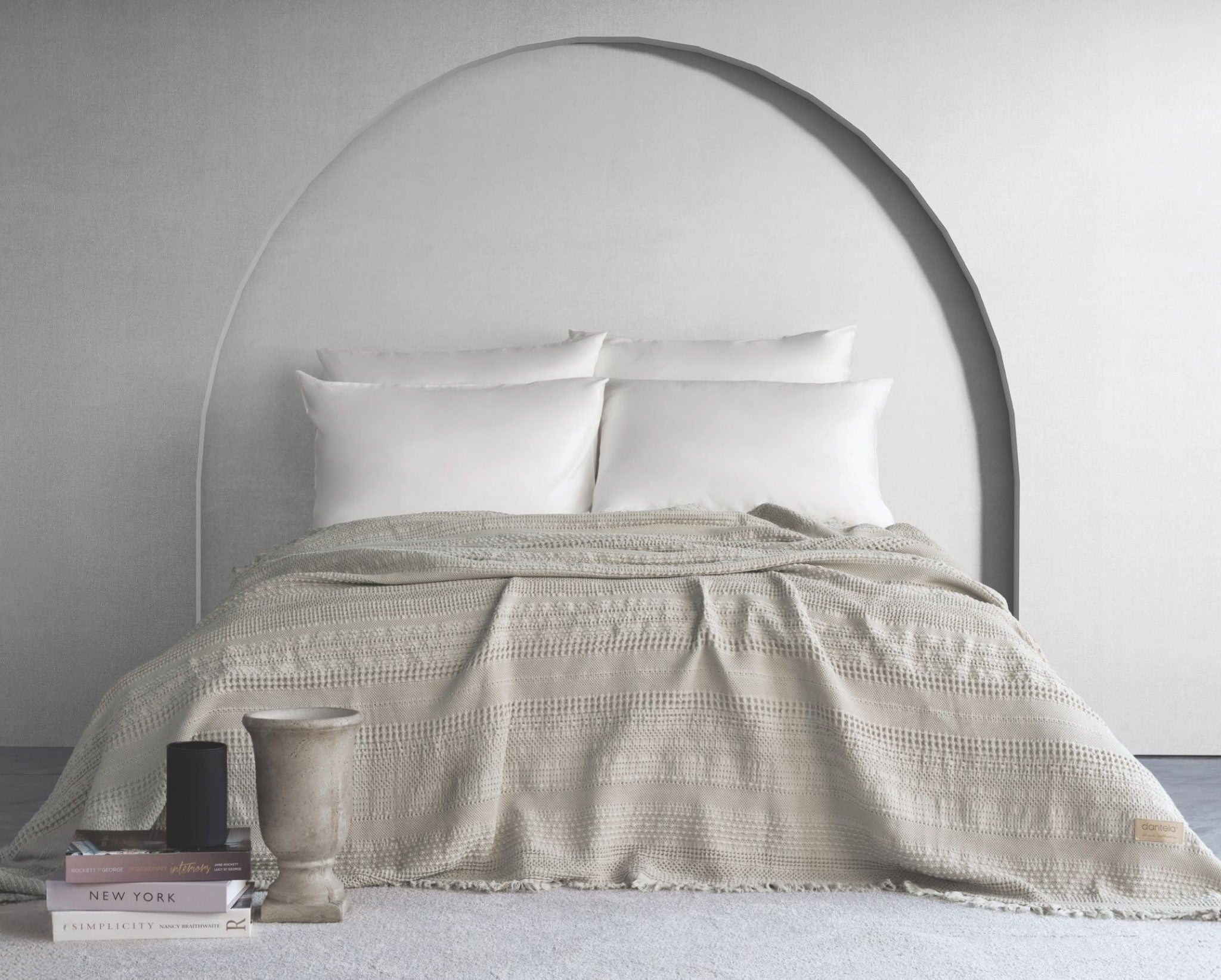Hafif ve yumuşak kumaşı sayesinde dört mevsim rahatlıkla kullanılabilir. Dayanıklı dokusu uzun süre formunu korurken, fitilli yüzeyi yatağınıza düzenli ve estetik bir görünüm kazandırır.