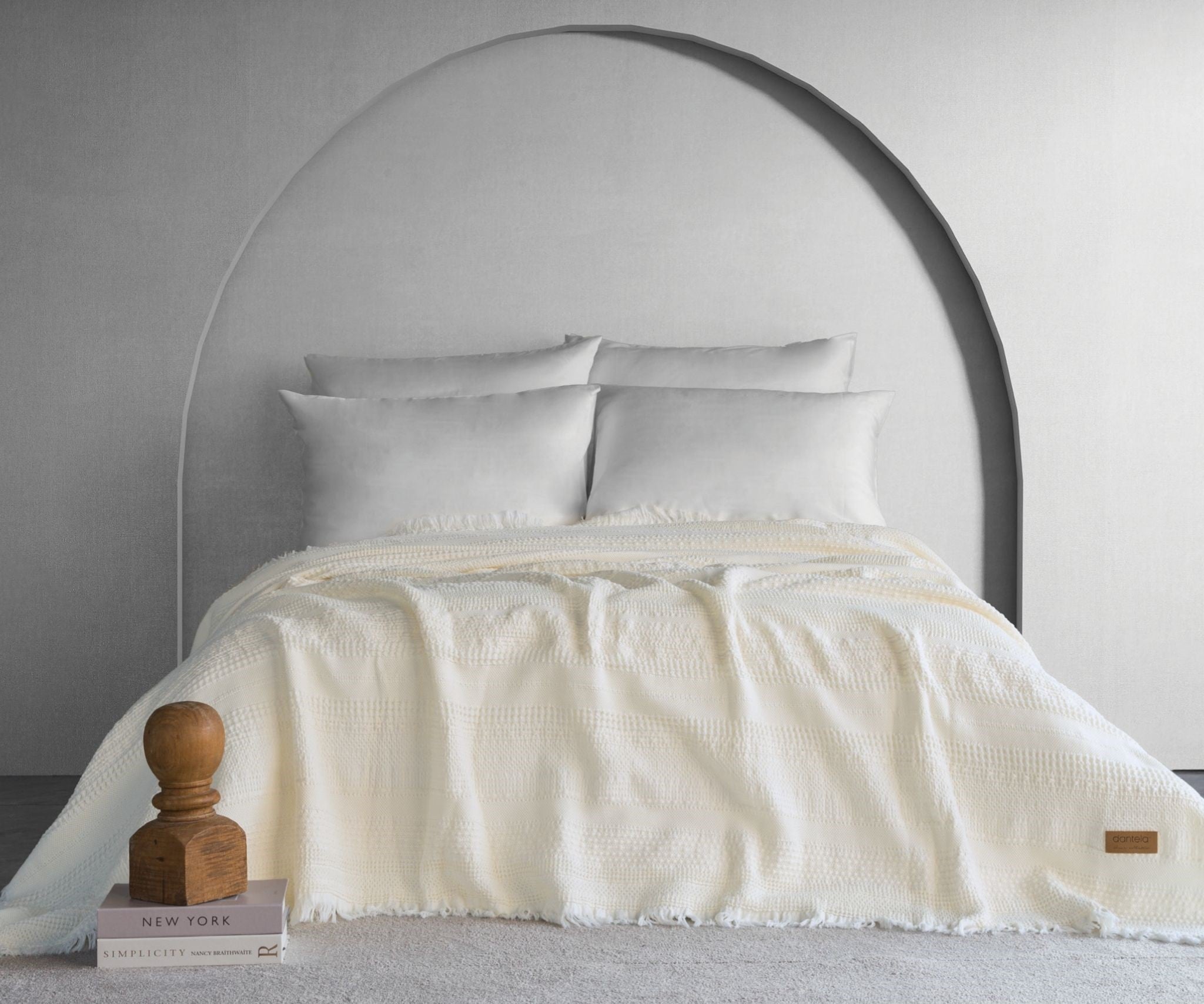 Yumuşak ve hafif kumaşı sayesinde dört mevsim rahatlıkla kullanılabilir. Kaliteli dokusu uzun ömürlü kullanım sunarken, fitilli yüzeyi yatağınıza düzenli ve estetik bir görünüm kazandırır.