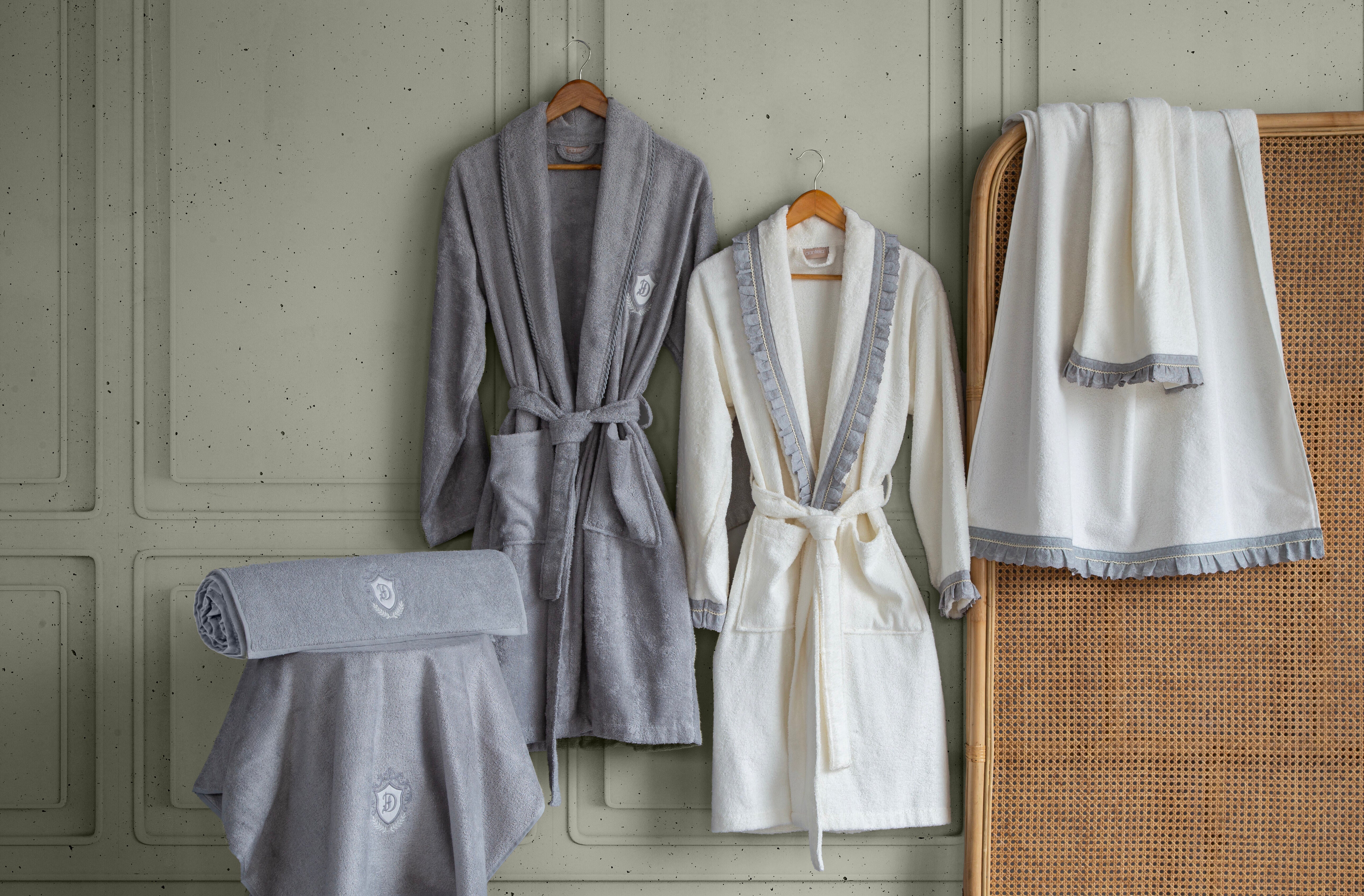 Krem ve mavi tonlarının huzur veren uyumunu, zarif güpür detaylarıyla birleştiren 6’lı pamuk bornoz setiyle banyo sonrası konforu yeniden keşfedin. Şıklığı ve işlevselliği bir araya getiren bu set, yüksek kalite pamuk kumaşıyla cilde nazik dokunuş sağlar, günün yorgunluğunu keyifli bir banyo sonrası ritüele dönüştürür.