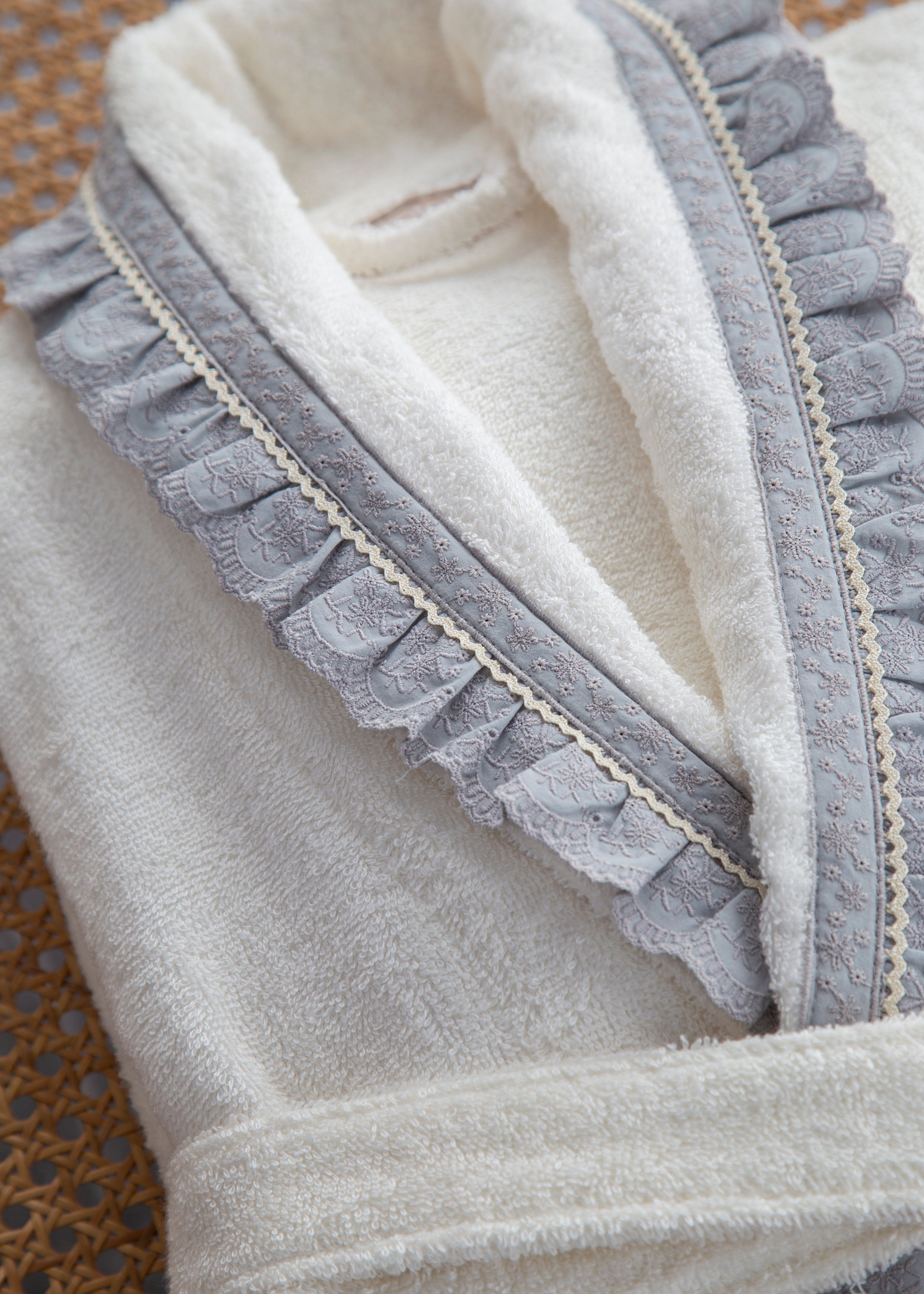 6'lı Güpürlü Pamuk Bornoz Seti – Krem/Mavi | Zarafet ve Konfor Bir Arada