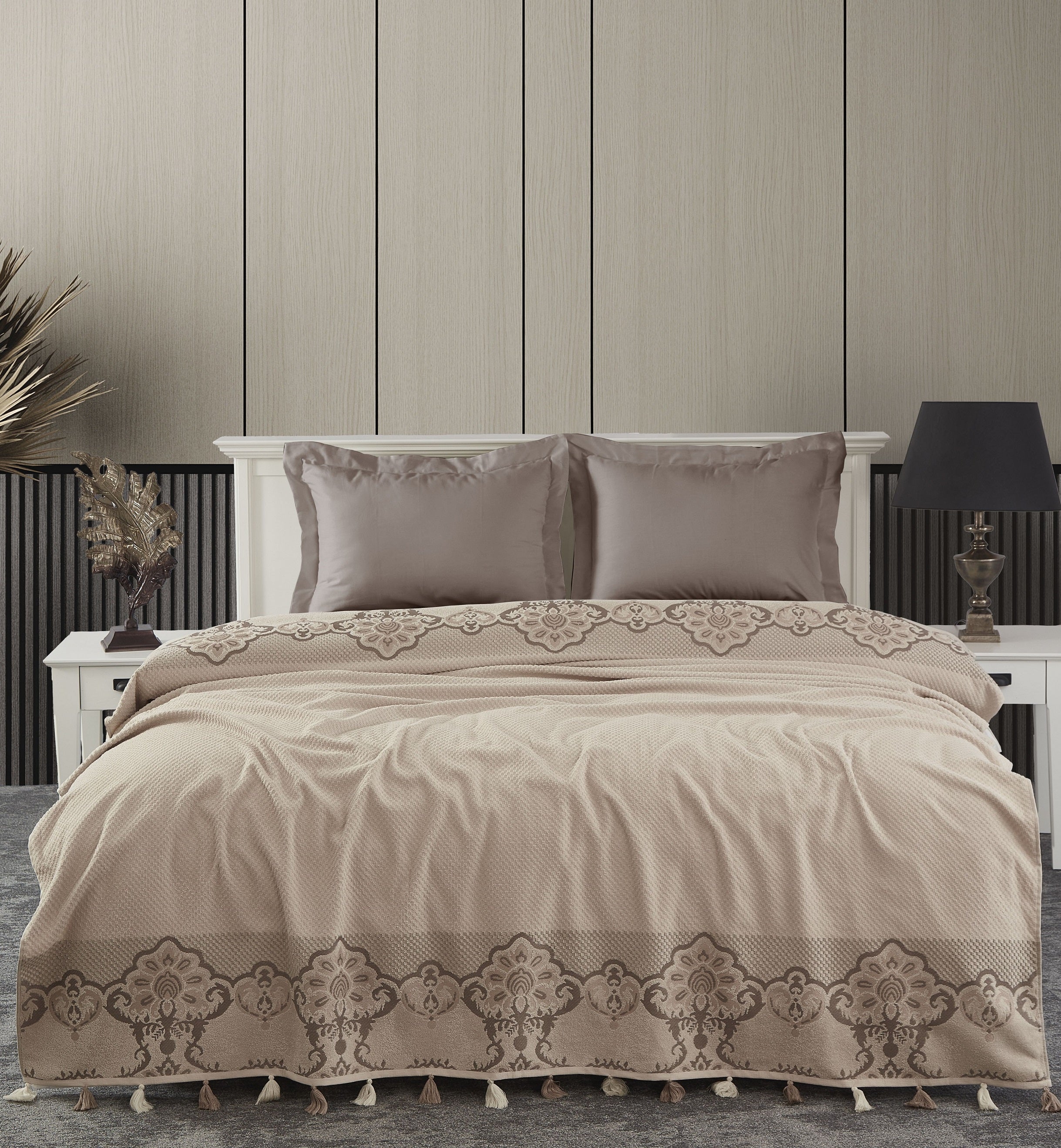 Идеальный вариант, чтобы украсить вашу спальню новым дыханием: комплект из хлопкового пике. Этот комплект сочетает в себе комфорт и элегантность с великолепной хлопковой текстурой. Каждая деталь была тщательно разработана и изготовлена с учетом удовлетворения потребностей пользователей.