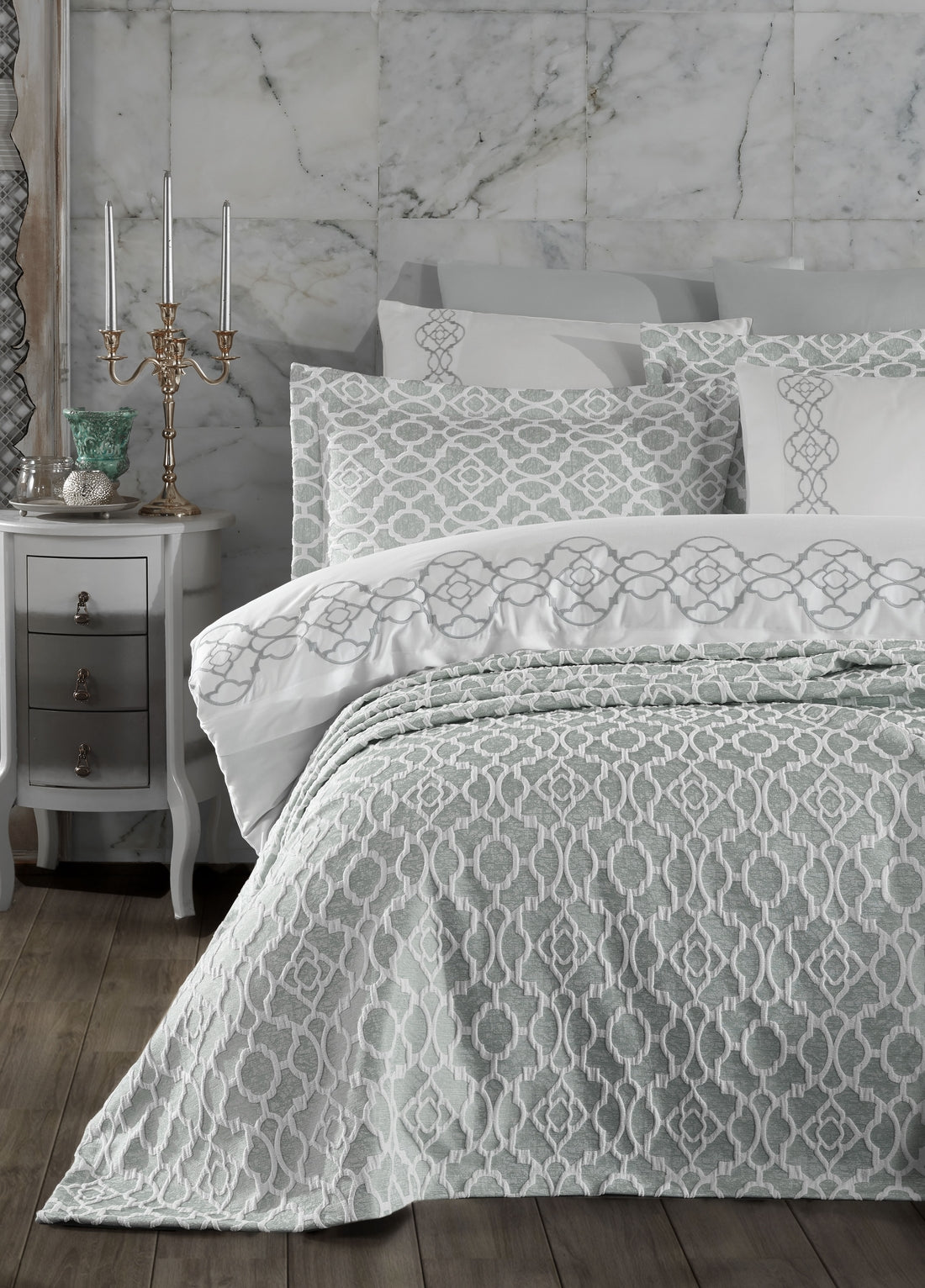Пододеяльник и жаккардовое покрывало с вышивкой Мальдивский - Виктория